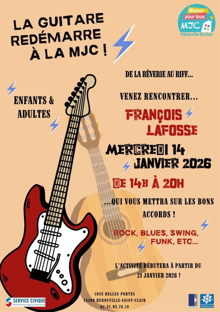 Si vous avez envie d'apprendre à jouer de la guitare à 3 ou à 2, de vous perfectionner, ou de vous lancer dans des soli, ce sera possible dès le mercredi 14 janvier à la MJC d'Hérouville.